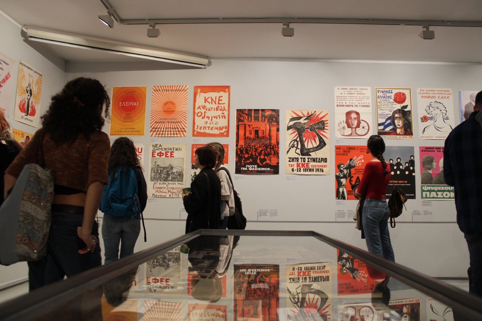 μεταπολίτευση. Οι πολιτικές και καλλιτεχνικές αφίσες πλαισιώνονταν από